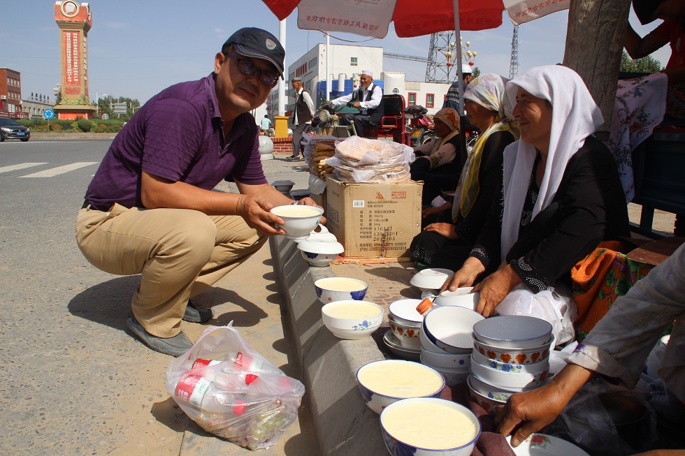 跨越北疆,途經(jīng)克拉瑪依百里油田,穿過烏爾禾,在俄羅斯風(fēng)情小鎮(zhèn)布爾津的河灘夜市上,我們吃著特色烤狗魚品嘗牧民自制的開菲爾風(fēng)味酸奶;在阿爾金山區(qū)、在阿貢蓋提草原感受古絲綢之路留下的文化及異域美食;在杜熱鄉(xiāng) G216 國(guó)道旁、在黑柳灘機(jī)場(chǎng)旁俄羅斯村的哈薩克氈房里、在賈登峪(封山育林示范基地)半坡上、在喀納斯國(guó)家地質(zhì)公園德瓦族的家訪中,在天山天池旁,各種特色的美食及奶制品讓我們無法忘懷。