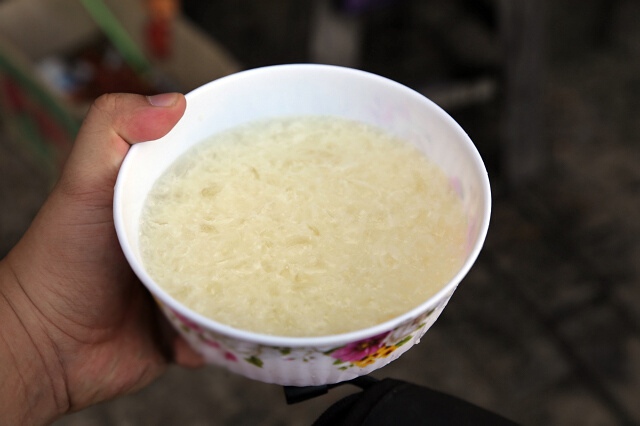 我們?cè)诳κ驳募猩掀穱L了當(dāng)?shù)氐淖灾扑崮蹋繎舻乃崮潭加胁灰粯拥奈兜?。但是統(tǒng)一的是碗的表面一定要有一層厚厚的奶皮子,如果不加糖,原味會(huì)有些酸。我們一邊喝一邊呲著牙,當(dāng)?shù)厝诵χf:“這才是那個(gè)正宗的味道!”