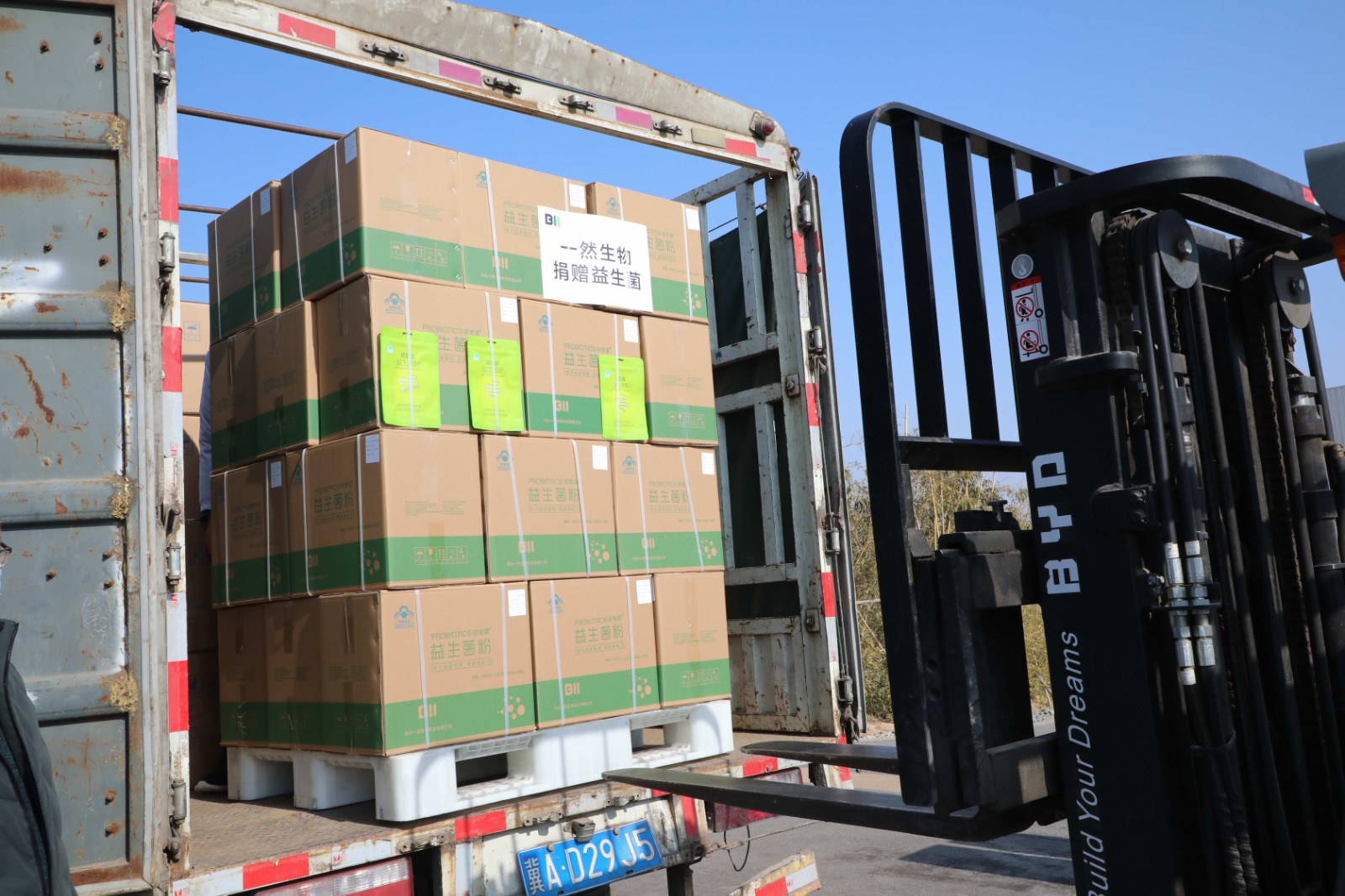 一然生物微生態(tài)益生菌制劑捐贈運(yùn)輸現(xiàn)場