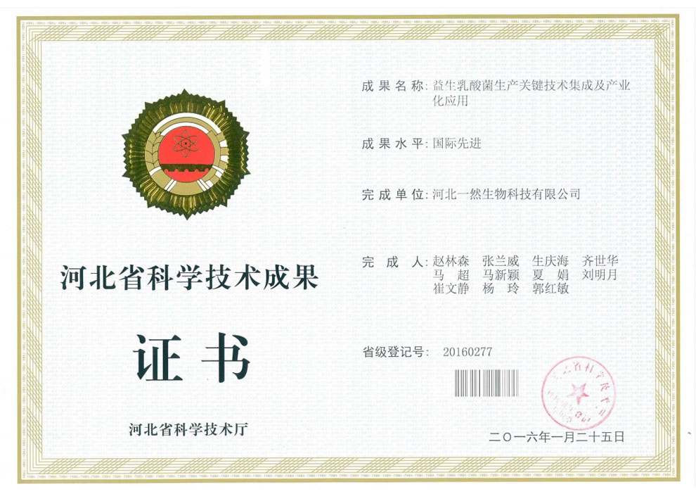 1、益生乳酸菌生產(chǎn)關(guān)鍵技術(shù)集成及產(chǎn)業(yè)化應(yīng)用 成果水平:國(guó)際先進(jìn)